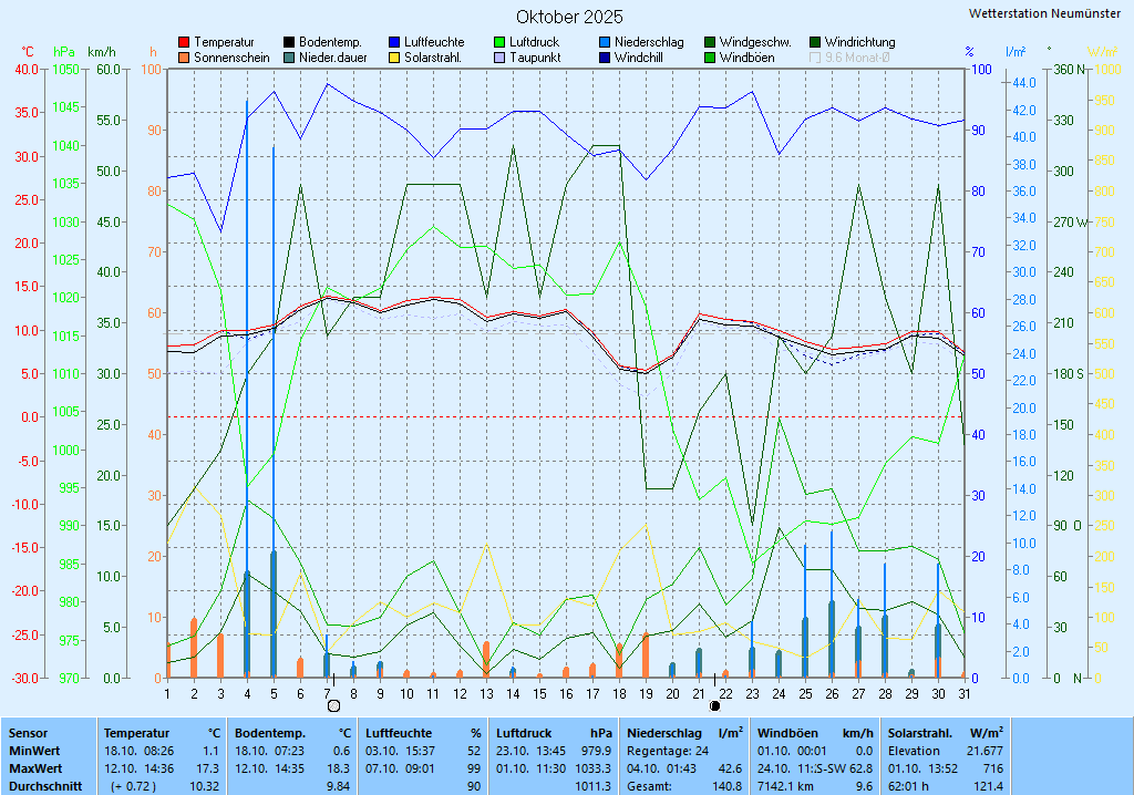 Oktober Tabelle Grafik Beobachtung Min-Max-Werte |