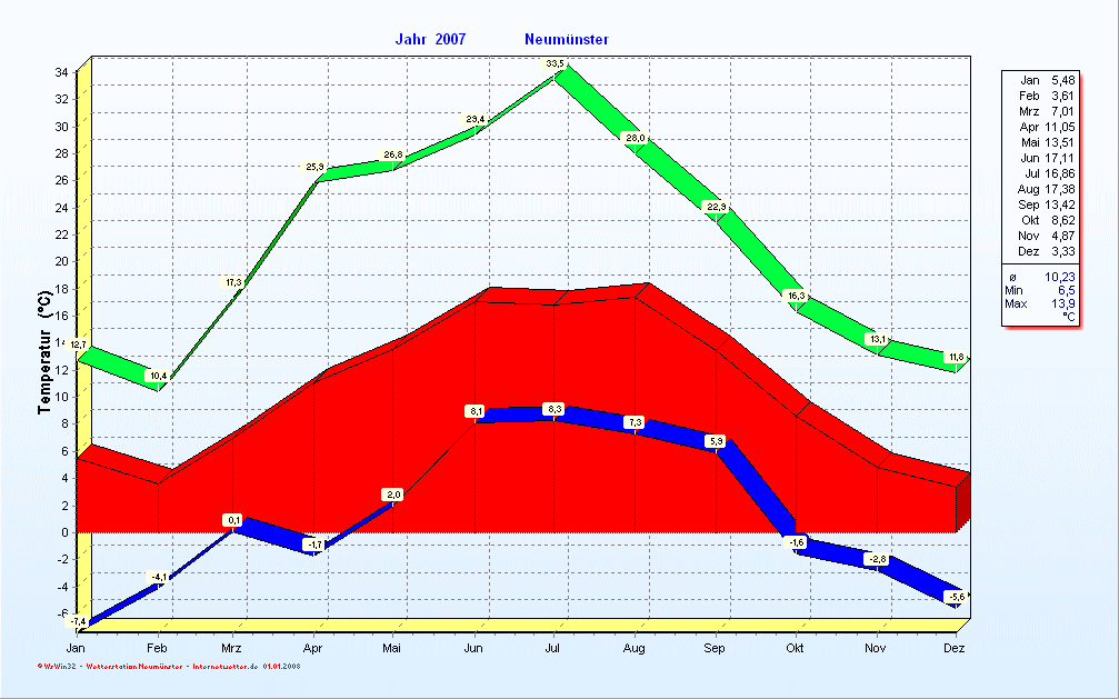 Januar Tabelle Grafik Beobachtung Min-Max-Werte |