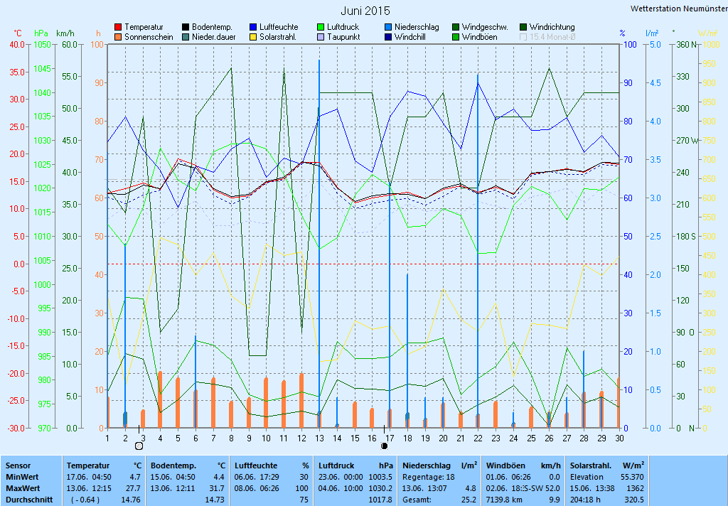 Juni Tabelle Grafik Beobachtung Min-Max-Werte |
