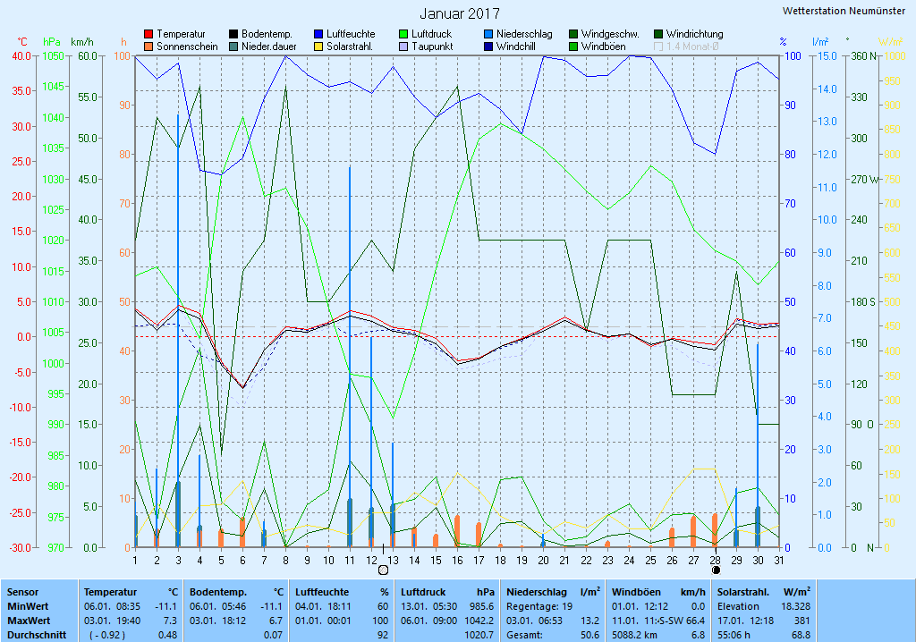 Januar Tabelle Grafik Beobachtung Min-Max-Werte |