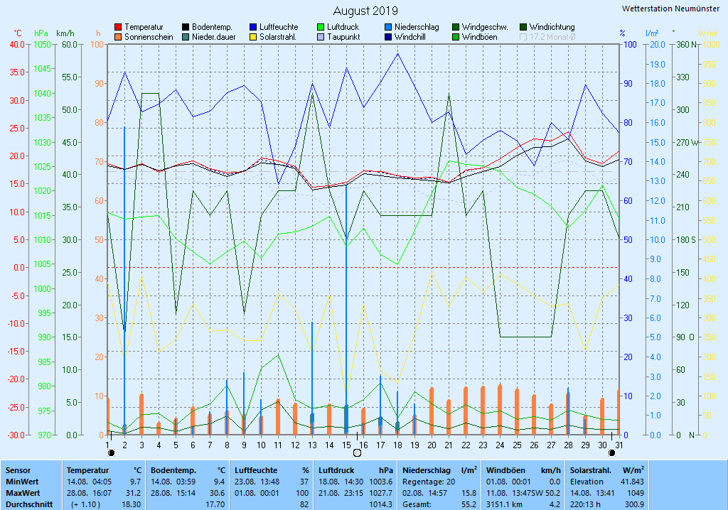 August Tabelle Grafik Beobachtung Min-Max-Werte |