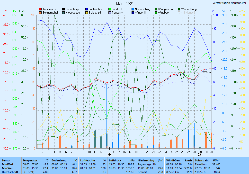 März Tabelle Grafik Beobachtung Min-Max-Werte |