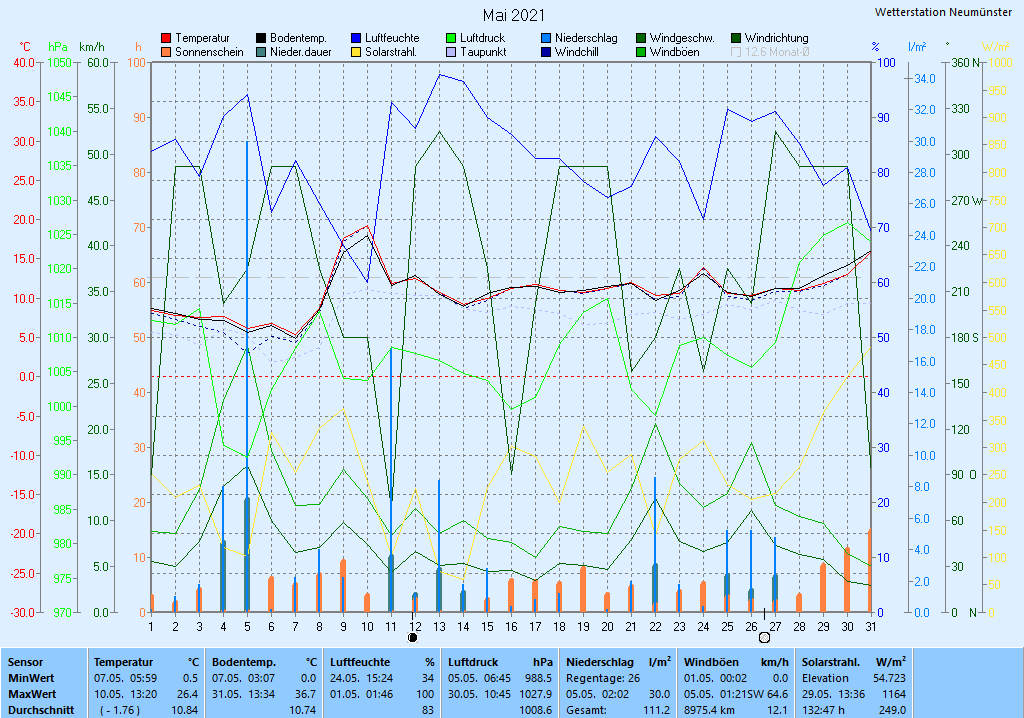 Mai Tabelle Grafik Beobachtung Min-Max-Werte |