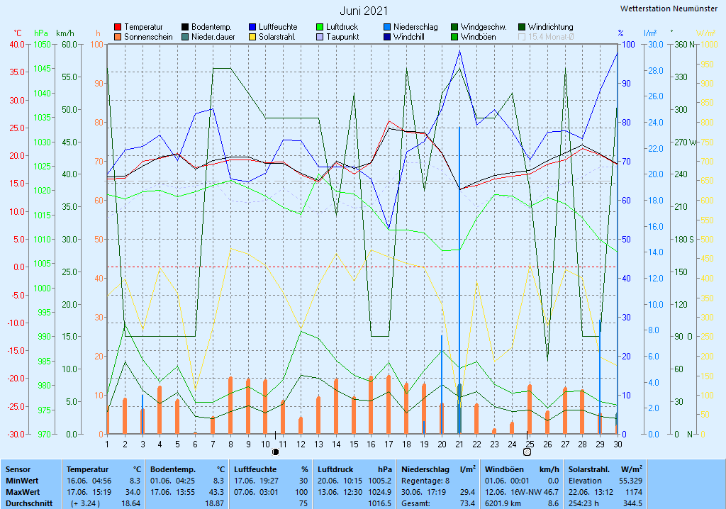 Juni Tabelle Grafik Beobachtung Min-Max-Werte |