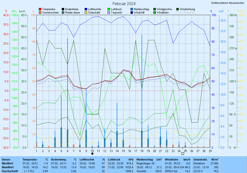 Februar Tabelle Grafik Beobachtung Min-Max-Werte |